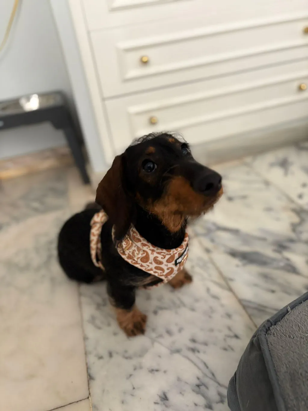 Es comodísimo, se adapta perfectamente a su cuerpo y no le molesta nada al caminar. Se nota que reparte bien la presión y eso me deja mucho más tranquila, sobre todo siendo un teckel. Además, es precioso, le queda ideal y recibimos muchos comentarios cuando salimos a pasear 😊